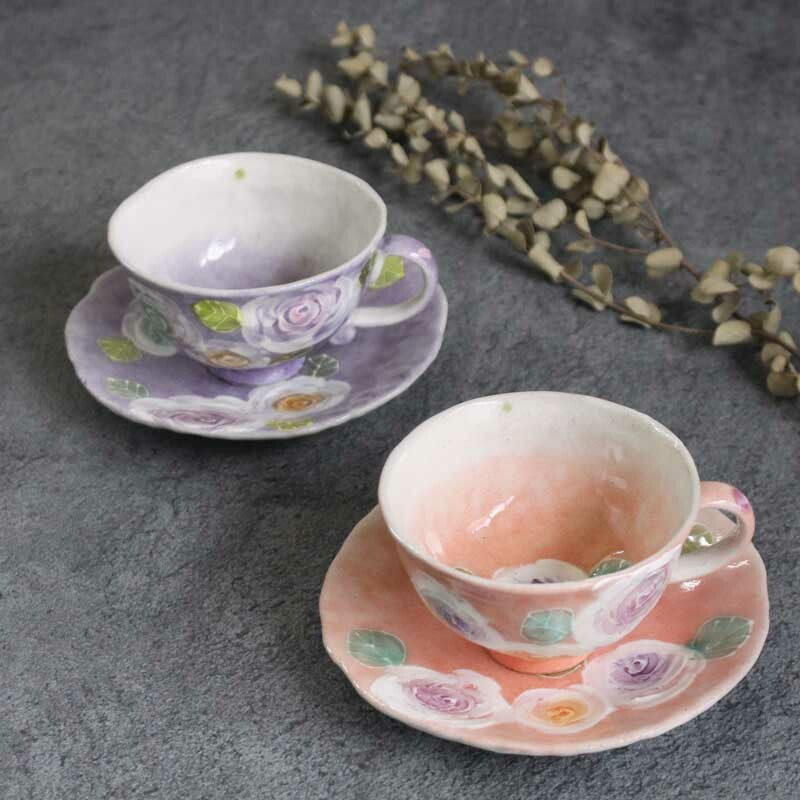 工房風花 彩玫瑰化妝 手繪玫瑰花紋 咖啡碗皿